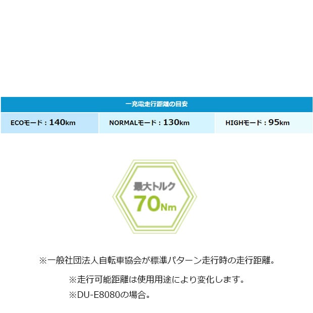 ※走行可能距離は使用用途により変化します。DU-E8080の場合。