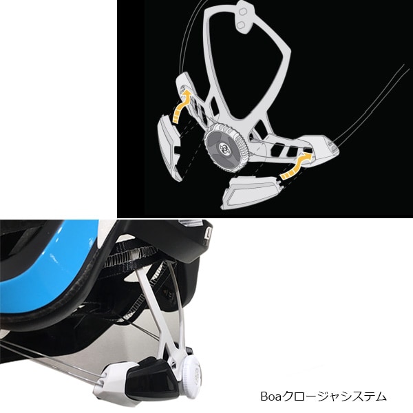 1mm単位の調整が可能で、尚且つ1点に締め付ける力が集中しにくく近年シューズに採用されることも多くなったBoaダイヤル、より細かなフィッティングが可能。