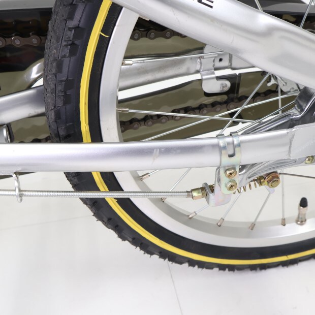 一部に傷がありますが、比較的状態の良い車体です。補助輪がスタンドに交換されています。