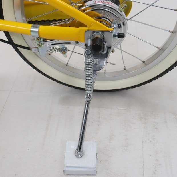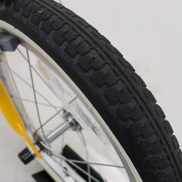 使用感の少ない車体です。補助輪がスタンドに交換されています。泥除けが後付けされています。チューブにパンク防止剤が注入されています。