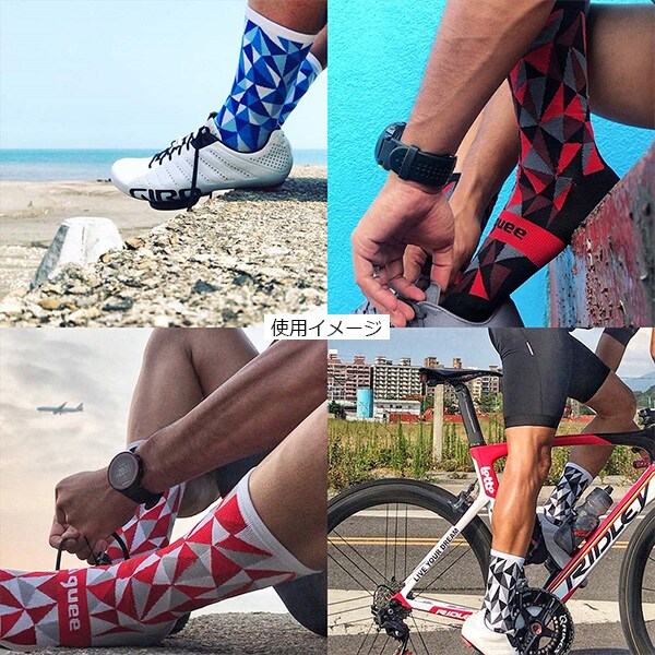 同じメーカーのバーテープとおそろいカラーにできるということで購入。 ソックス自体は少し生地が厚め(冬用ほどではない)でしっかりした印象。真夏は暑いかもしれませんが、肌ざわりよく履き心地もいい感じ。割と丈が長いので短めが好きな人には合いません。私は好きです。デザイン的にも単独で使用しても映え、セットで使用すればなおよしということでお気に入りの一着です。 バーテープ、ソックス共にちょっと値段が高めなのが★一つ減らした理由です。