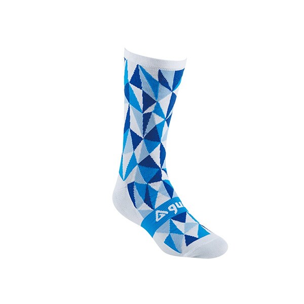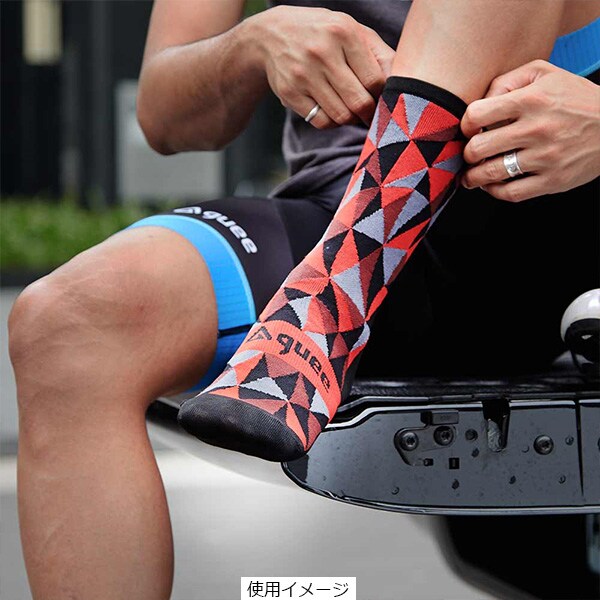 特徴的なデザインが目を引くソックスであるが、デザインだけでなく履き心地も快適。やわらかめの素材で肌触りがよく、つま先やかかとはクッション性も高めで痛みを感じにくい。汗をかいてもドライに保ち、長時間のライドでも不快になりにくい素材です。