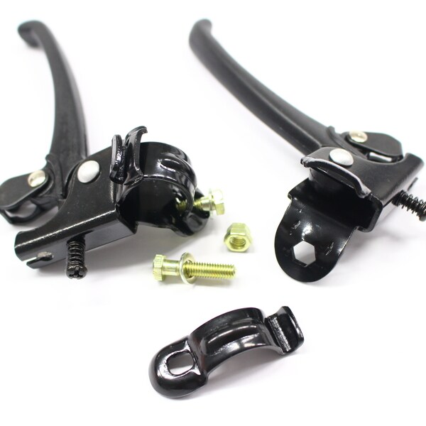スチール芯入りの樹脂ブレーキレバー。ジュニア/軽快車用。ブレーキ幅の調節が可能。