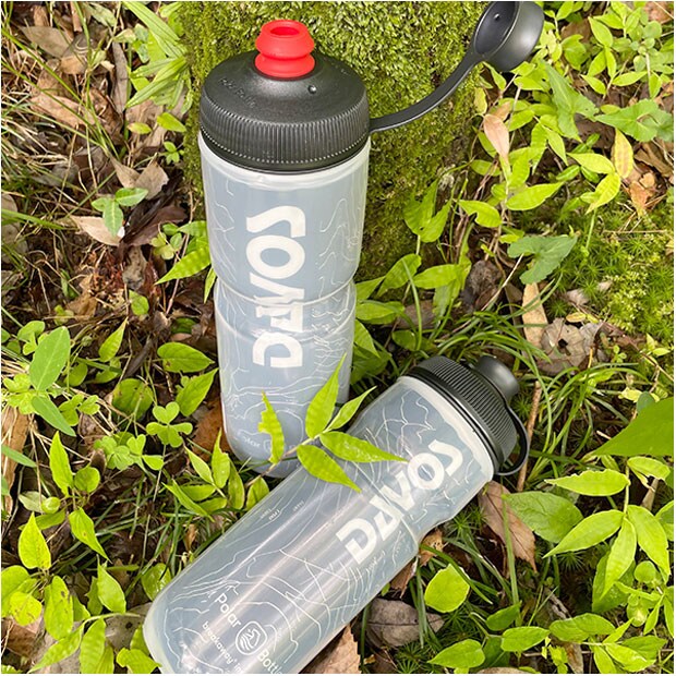 PolarBottlexDAVOS 限定モデル。サイクリスト達の聖地であるダボスの等高線がデザインされた、シックな仕上がりです。