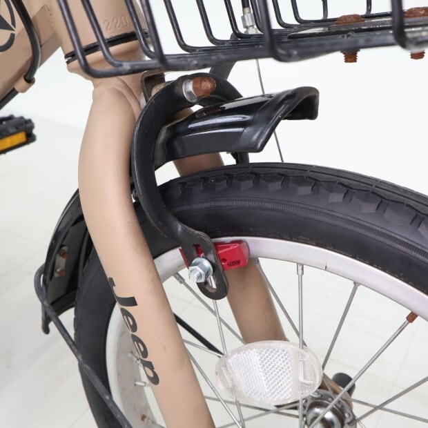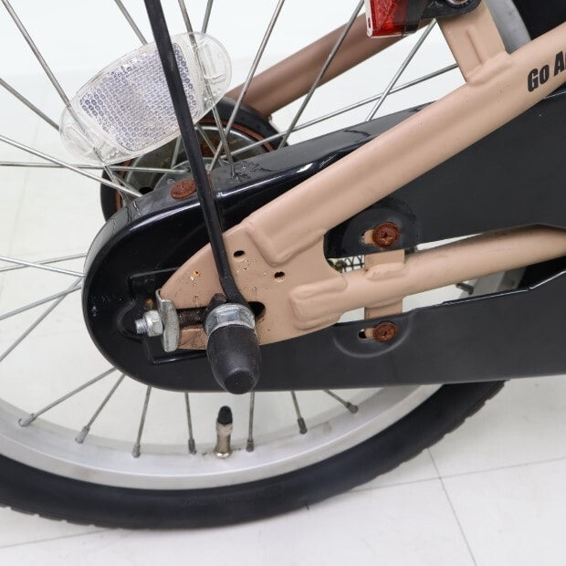 一部に傷や錆がありますが、比較的状態の良い車体です。補助輪がスタンドに交換されています。