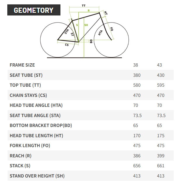 | 適正身長 | 160cm~175cm(43cm-XS) 170cm~185cm(47cm-S) |