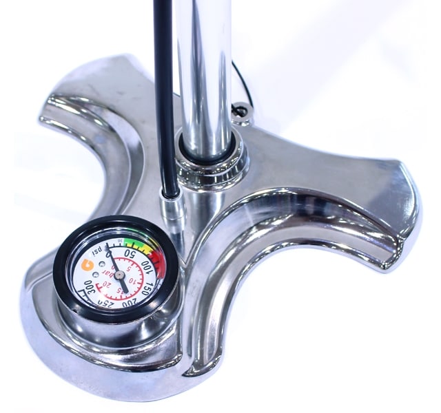 CNC切削加工の美しいアルミボディ。高圧対応でラクに空気を入れる事ができます。