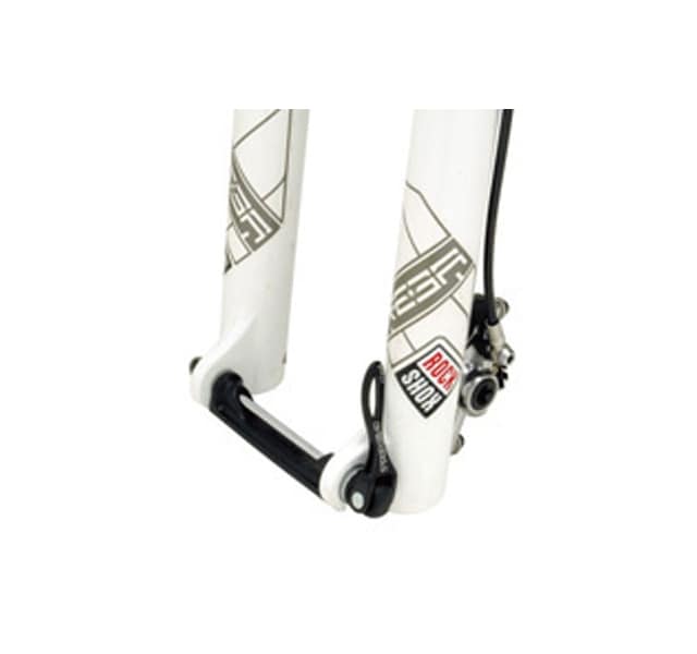 輪行時、ホイールを外したフロントフォークまわりを保護するクイック式フォークホルダー。