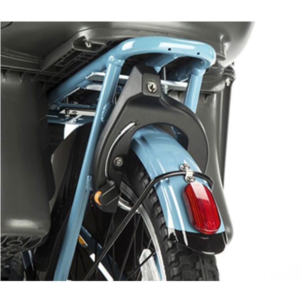 レトロなデザイン。サドル下部に幅広ガードを設けることでラクにスタンドが立てられる。
