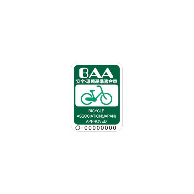 BAAマークが貼付された自転車は、一般社団法人自転車協会が制定した安全・環境基準適合車です。