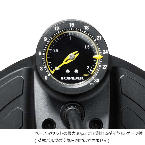 ベースマウントの最大30psiまで測れるダイヤルゲージ付(英式バルブの空気圧測定はできません)