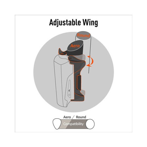 本体のアジャスタブルウイングを調整することで丸型から、エアロ形状のポストまで対応します。 付属のゴムバンドを使用して取付するのですが、これは2種類。中程度の長さ(丸型シートポスト用)と長いもの(エアロポスト用)があります。 シートステーにつけようとした場合は、付属のバンドでは長すぎるので他メーカーのバンドや市販の短いものを用意する必要があります。 取付向きは、一応右側に取付けた際に右側にスイッチが出るように(ボディの赤い部分が少し下に出っ張る向き)する方向が正解。ただ、角度差 はないので、左手での操作を好む方は逆向きにしても問題ないでしょう。