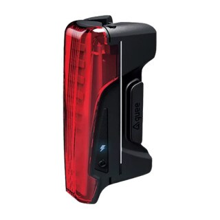 明るさは、目視でわかる程度で明るく(数値で見ても最大60ルーメン)視認性は良い印象。 ライトの点灯パターンは、遅い点滅(フラッシュ)/速い点滅(ストロボ)/点灯と切り替わり、3秒の長押しで消灯します。 長押し1.5秒で「オートモード」になります(スイッチ付近が青色に光ります)。この時に「モーションセンサー」が感知することにより「減速時 の強点灯」が行われます。