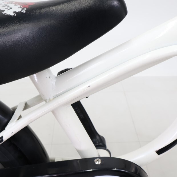 一部に傷や錆や日焼けや汚れがありますが、比較的状態の良い車体です。補助輪がスタンドに交換されています。
