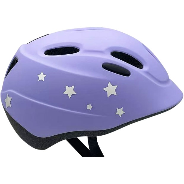 ヘルメット後部に反射シールが貼ってあります。車などのライトを反射し、周囲に存在を知らせてくれます。
