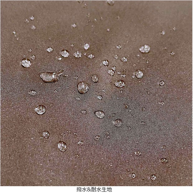 A:本商品は、表面生地に撥水加工、裏面に防水フィルム生地を施しております。