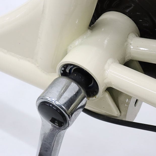 前後上下に広々設計!ラク乗りフレーム。サドルを低く下げられ、またぎやすいフレーム形状。