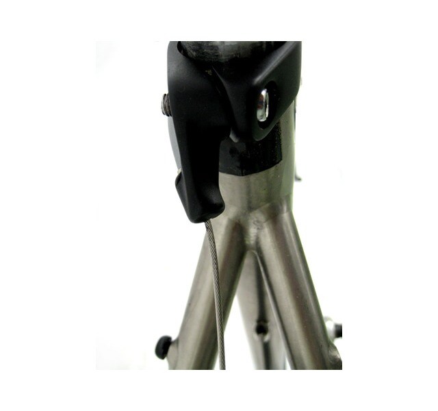 シートクランプにアウター受けが付いています。Vブレーキ仕様のクロスバイクやMTBにカンチブレーキを入れて、ドロップハンドル+STIレバーに改造する時や、ワイヤールーティングを変えたい時に便利です