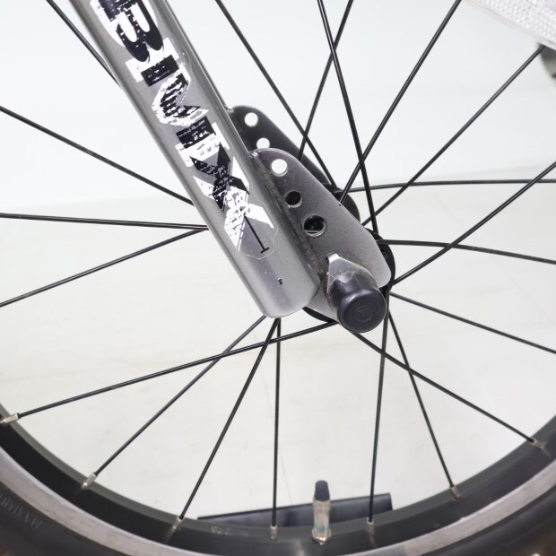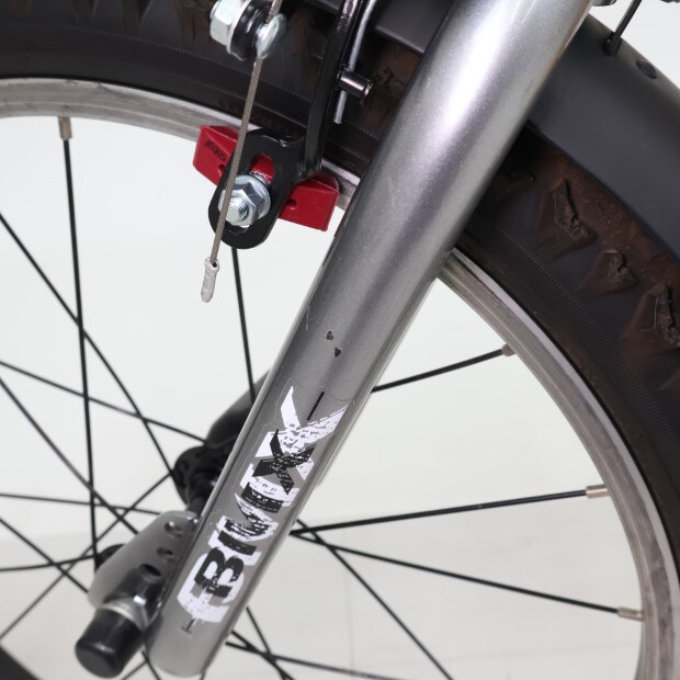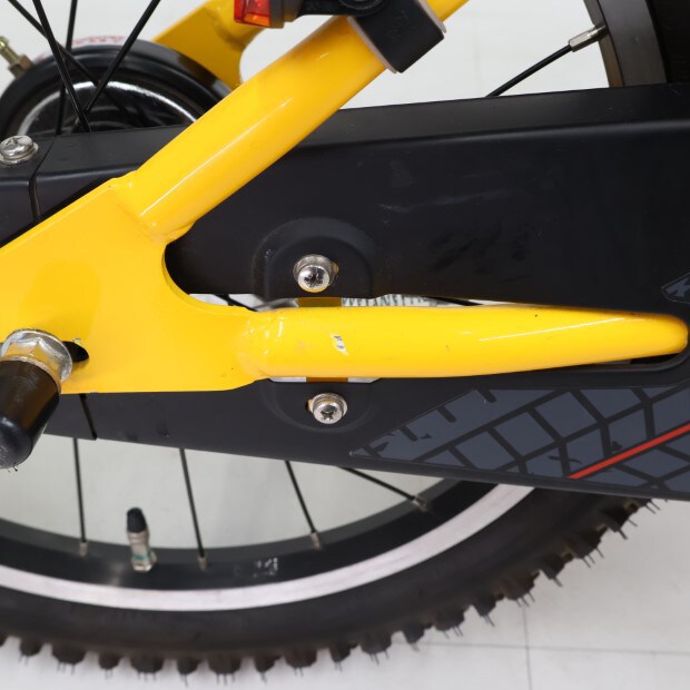 一部に傷や錆やスレがありますが、比較的状態の良い車体です。補助輪がスタンドに交換されています。