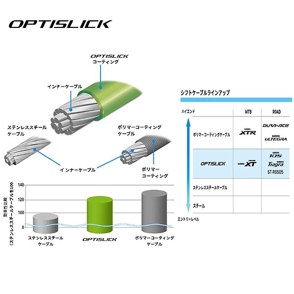 OT-SP41では、素早く正確なシフトパフォーマンスを発揮するように、アウターケーシングが全長にわたって特殊なシリコングリスであらかじめ潤滑されています。OT-SP41は、インナーケーブルの摩擦を最大限に減らし、操作に対する素早い反応と、軽い力による快適なシフトを実現しました。さらに、シフト時のパワーロスや、アップダウンの激しい地形やロングライドにおいてもシフト操作による疲れを軽減します。ご要望の多かったカラーアウターも8カラーのバリエーションでお応えします。