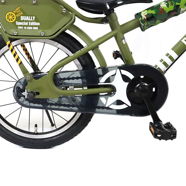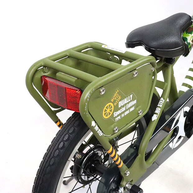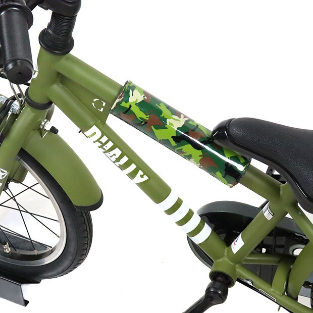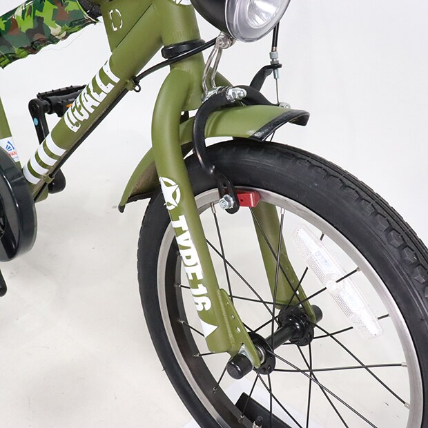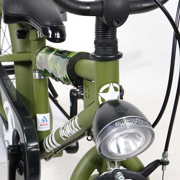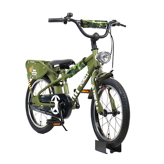 ハンドルに日焼けあり。補助輪がスタンドに交換されています。
