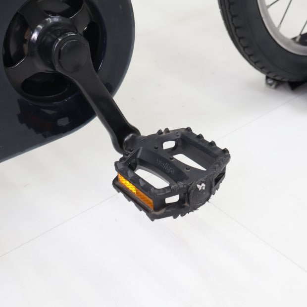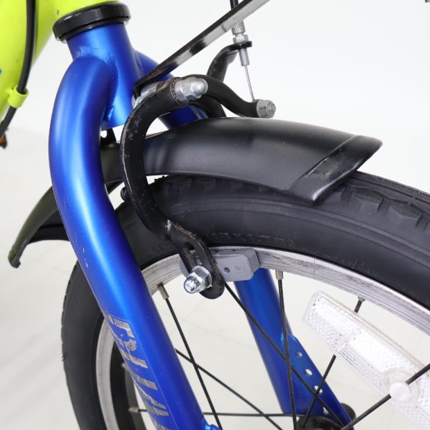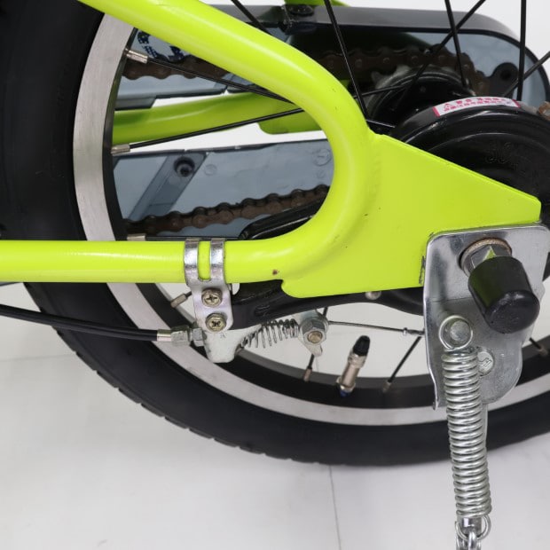 一部に傷や錆がありますが、比較的状態の良い車体です。補助輪がスタンドに交換されています。