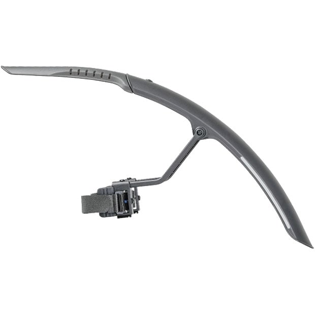 面ファスナーで簡単・確実に装着でき、調整可能なアルミ製ステーが泥や水から効果的に防ぎます。