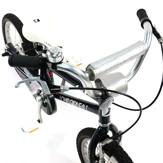 • ・ズボンの裾の汚れや巻き込みを防ぐチェーンケース、弱い握力でも止まれるVブレーキ、ステムとハンドルのパッドなど、お子様の安全に配慮しました。フレームやホイール部分には軽量で錆び難いアルミ素材を使用しているので自転車全体の重量も軽く、パパやママが持ち運ぶときでも楽なのがいいところ。