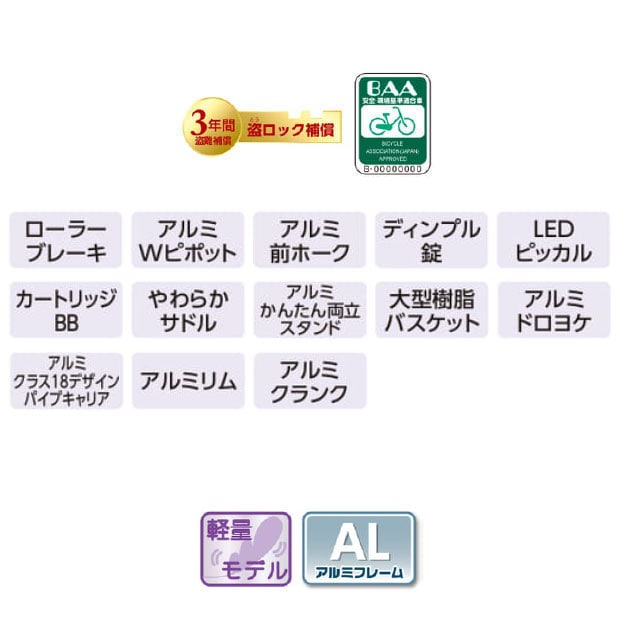 BAAマークが貼付された自転車は、一般社団法人自転車協会が制定した安全・環境基準適合車です。