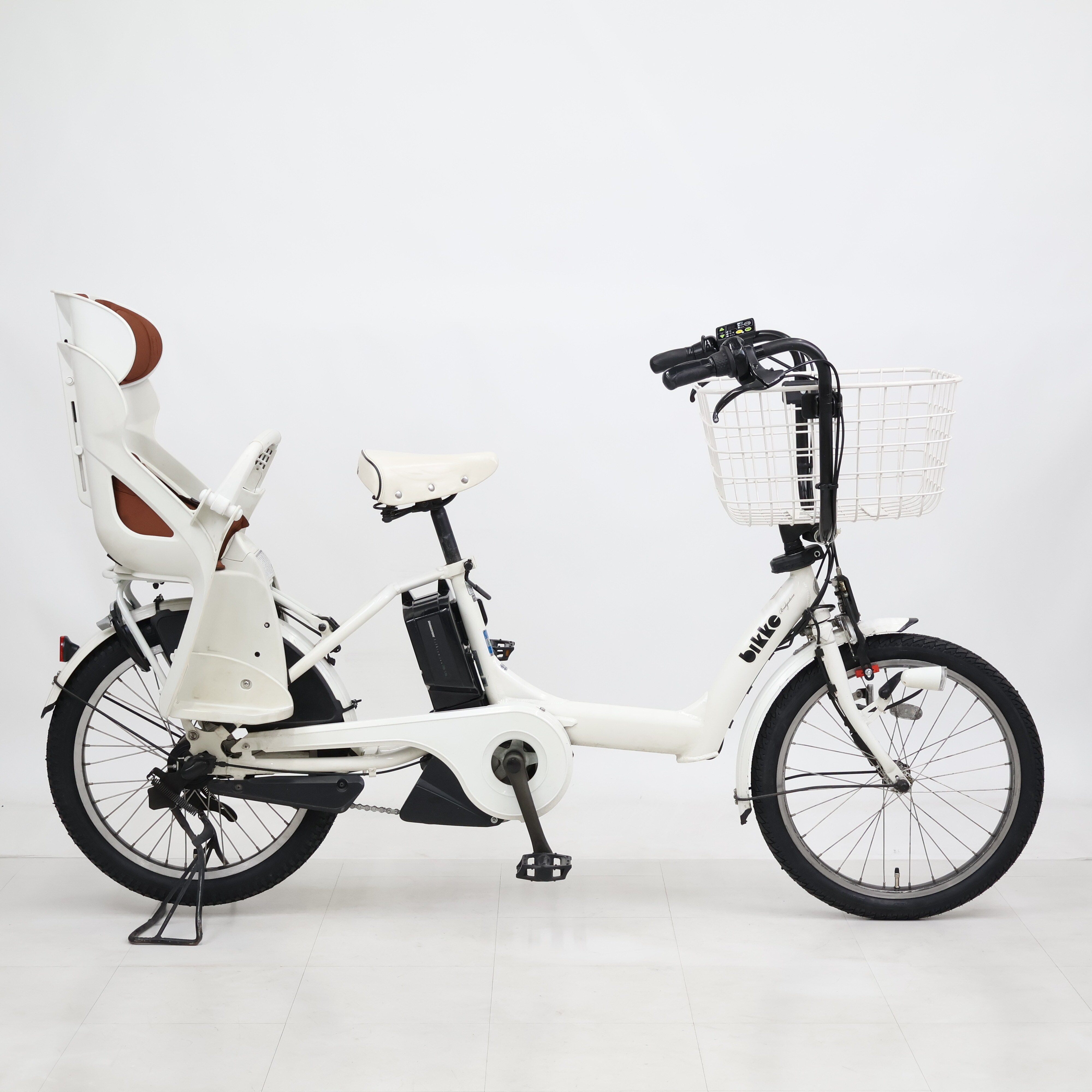 傷、錆、スレ、日焼け、汚れあり。フロントチャイルドシートがカゴに付け替えられています。リアチャイルドシートが後付けされています。ハンドルロック機能が外されています。