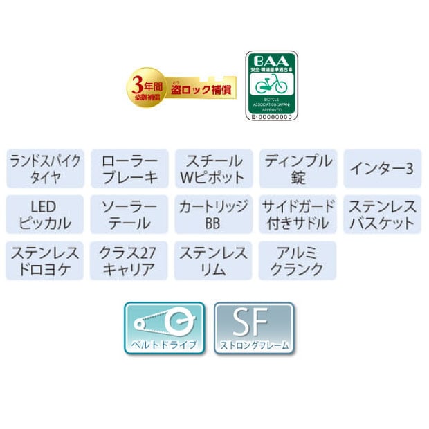 BAAマークが貼付された自転車は、一般社団法人自転車協会が制定した安全・環境基準適合車です。