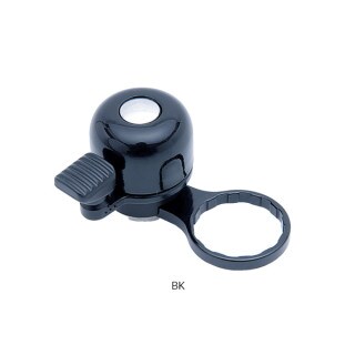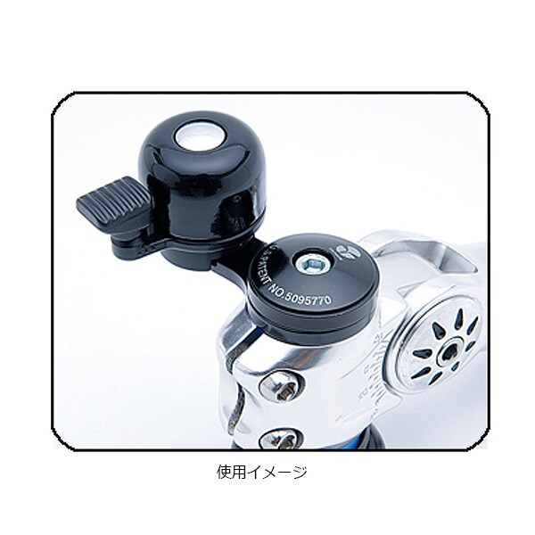 トップキャップの下に挟み込み固定するベル。ロードなどにスマートに取付可能。東京ベルのアルミ製ちび丸を採用し音色も良好。
