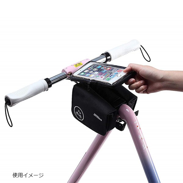 STRIDAロゴ入り5.5インチスマートフォンが収納可能なケース付フレームパニアバッグです。
