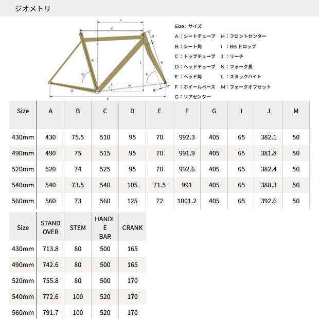 | サイズ | 430mm / 490mm / 520mm / 540mm / 560mm |