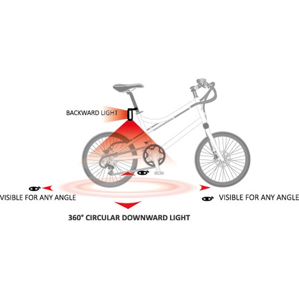 後方からの視認性を高めるテールライトとしての機能はもちろんのこと、地面に360度照射することで、前方や横方向から接近する車にも存在をアピールすることが可能で、ナイトライドの危険回避性を大幅にアップしました。