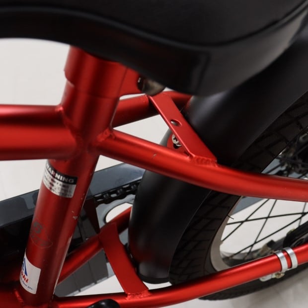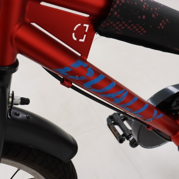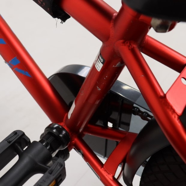 一部に傷や錆がありますが、比較的状態の良い車体です。補助輪がスタンドに交換されています。
