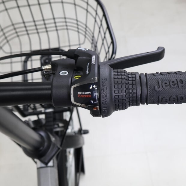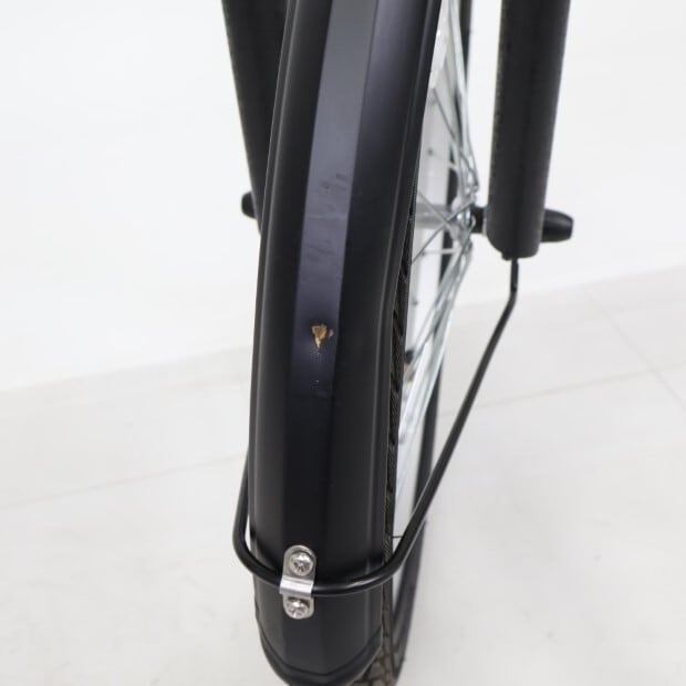 使用感の少ない車体です。前カゴが後付けされています。前後チューブにパンク防止剤が注入されています。フロントライト欠損。