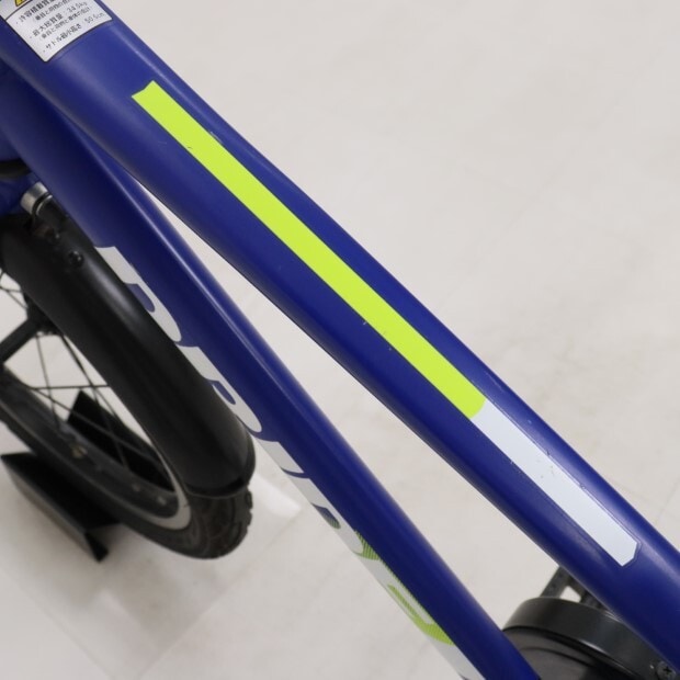 一部に傷や錆、日焼けがありますが、比較的状態の良い車体です。補助輪がスタンドに交換されています。