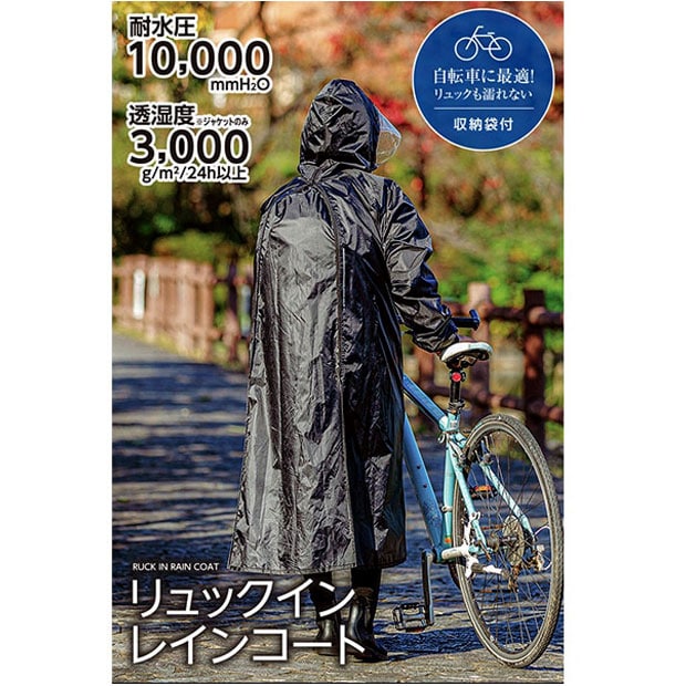 自転車に最適!リュックごとスッポリ覆い、全身カバー。濡れることなく快適に過ごせます。