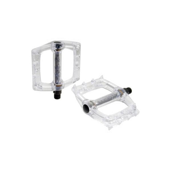 縦にも横にも靴底に食い付きが良いよう、中央を低くした「デュアル コンケーブ デザイン」の軽量・薄型エンジニアリング プラスチック ペダル。