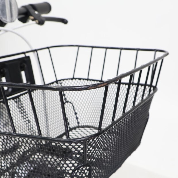 使用感の少ない車体です。前カゴ、前後泥除けが後付けされています。