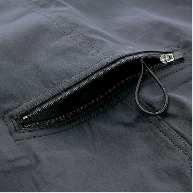 小物の収納に便利な13cmあきファスナー付き右サイドポケット