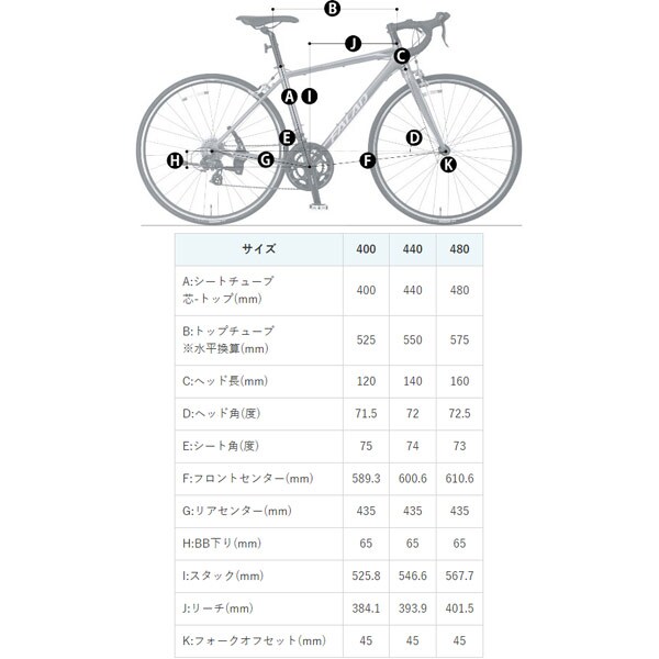 | ギアクランク | 42T 165mm(400、440) 170mm(480) |