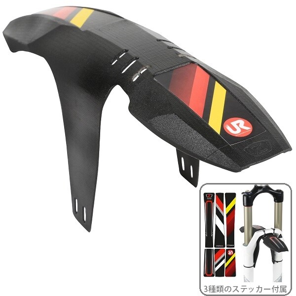 プロライダーが開発に携わるディフレクターFM20フロントマッドガードは、DH、エンデューロ、XC等での使用にも適しています。3種類のステッカーでカスタマイズすることが可能。丈夫なプラスチック製。付属のタイラップバンドで取付も簡単です。