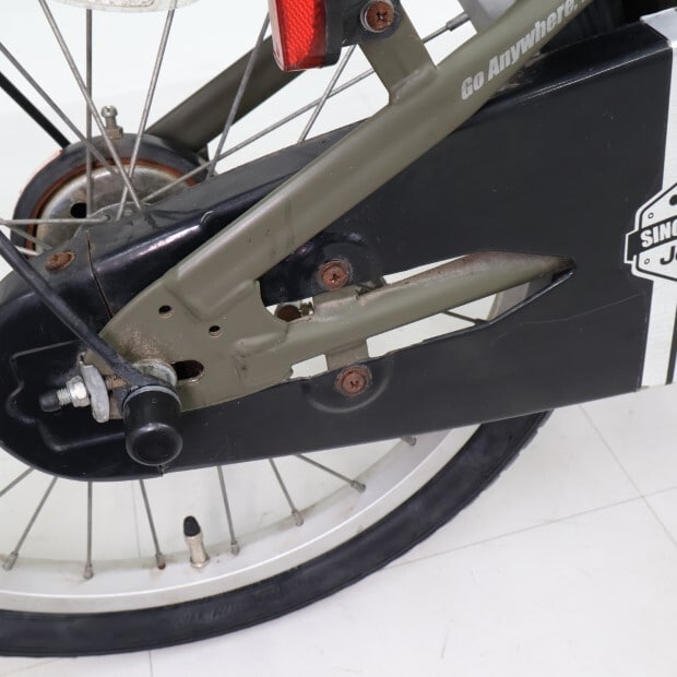 傷、錆、日焼けあり。補助輪がスタンドに交換されています。