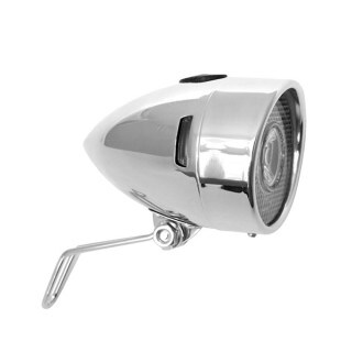 レトロヘッドライトのメタルボディデラックス版。クロームメッキされたすべてのスチール製ハウジングに大きなポリカーボネイトレンズが付いています。