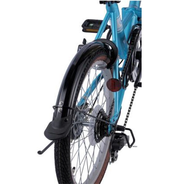 前後フェンダーを標準装備。路面が濡れていても衣服が汚れにくいので、安心。マッドフラップがワンポイント!