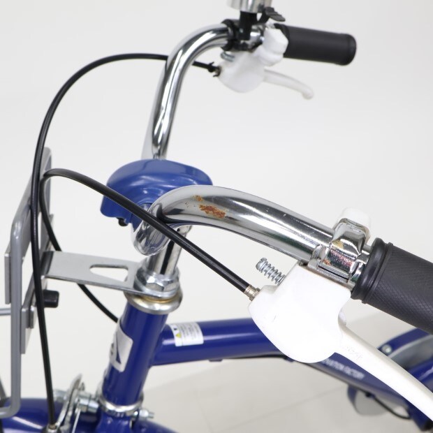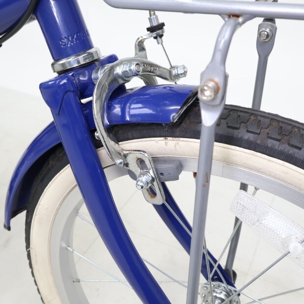 一部に傷や錆がありますが、比較的状態の良い車体です。前後泥除けが後付けされています。補助輪がスタンドに交換されています。