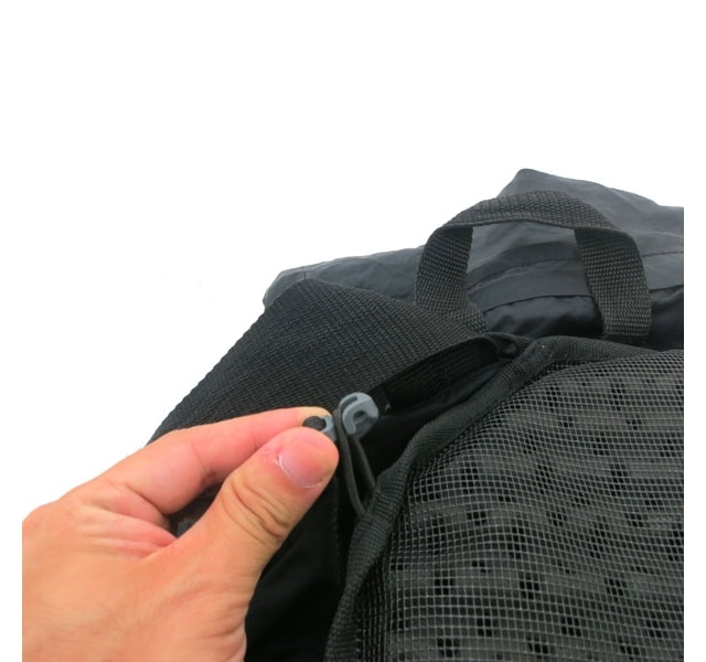 背中側には滑り止め素材のメッシュ、バッグ側にはストレッチ性のメッシュを採用。装着中のズレを防ぎます。