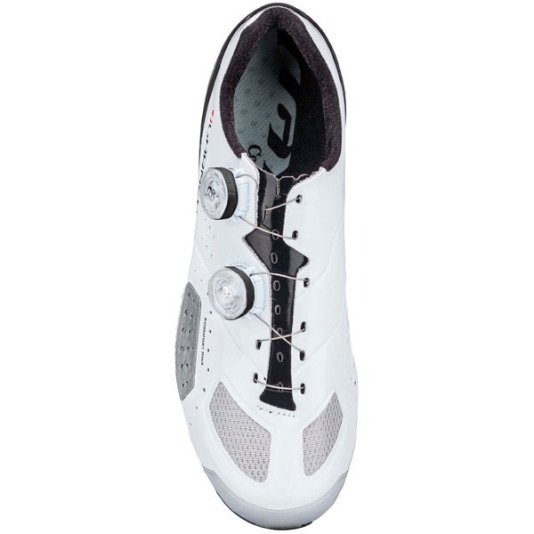 伸縮性素材をサイドに配置し、シューズ内の圧迫感を無くす事でロングライド時の快適性が向上。シューズ幅サイズもナローからワイドのラストに対応している。